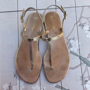 Lilly Pulitzer Gold and Tan Sandals T-Strap Design