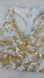 Chic sports bra with gold accents. Offers comfort and style for workouts.