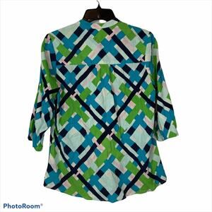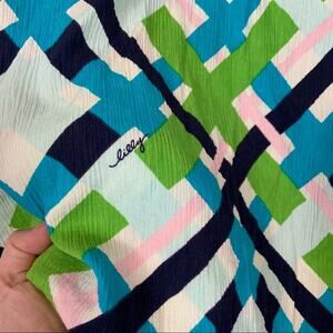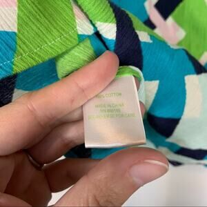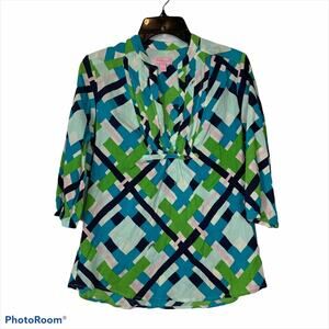 Lilly Pulitzer Green Blue Abstract Popover Blouse