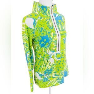 Lilly Pulitzer Green /Blue Roar Of The Jungle Skipper Popover Half Zip Top Sz XS.