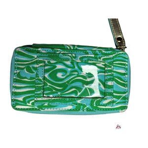 Lilly Pulitzer Green Pink ID Case Carded Purse Wristlet Wallet And Luggage Tag