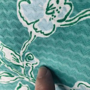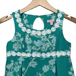 This casual sundress by Lilly Pulitzer features a vibrant green hue with a sleeveless halter neckline, perfect for resort wear. The dress showcases a delicate floral pattern, adding a touch of elegance to its breezy design. Ideal for warm weather, it offers a comfortable fit and a stylish look for any casual outing.