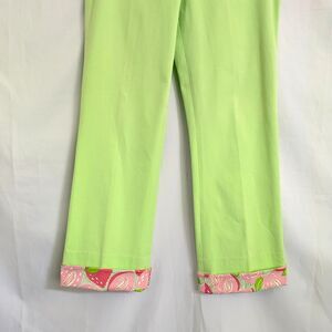Lilly Pulitzer Green Stretch Pants Size 8 Floral Cuffs Stretchy 90's Retro
