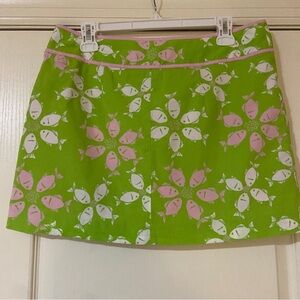 Lilly Pulitzer Green and Pink Fish Print Skort