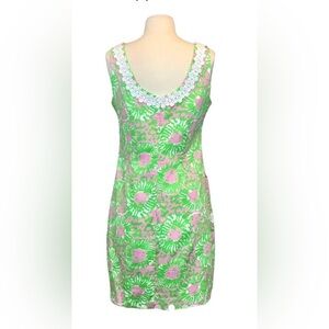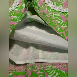 Lilly Pulitzer Green and Pink with White Lace and Pockets size 4
