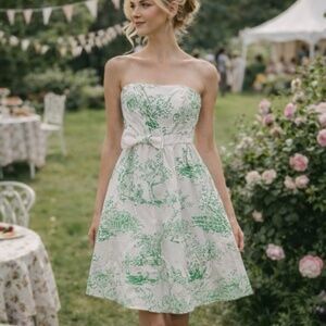 Lilly Pulitzer Rainbow Dot White Strapless Dress 14