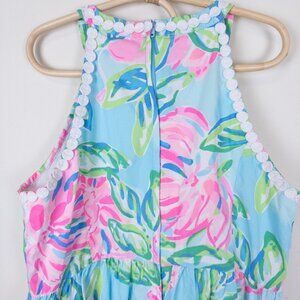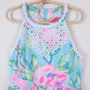 Lilly Pulitzer Halter Tropical Floral Print Crochet Lace Dress Colorful Girls 12