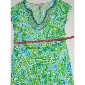 Lilly Pulitzer Harper Embellished T Shirt Dress Green Blue Pastel Linen Blend S