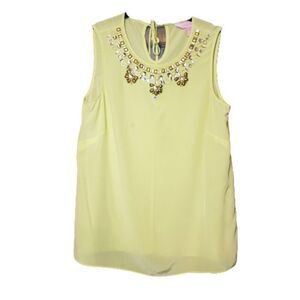 Lilly Pulitzer Havana 100% Silk Embellished Top in Kelp Green Yellow Size XS