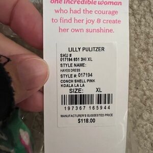 This NWT size XL Lilly Pulitzer Hayes Dress in Conch Shell Pink Koala La La is SO bright and cheerful! Perfect for that fun girls trip, baby shower, summer luncheon and more. From smoke-free and pet-free house. No returns. Check out my other listings! Thanks for looking.