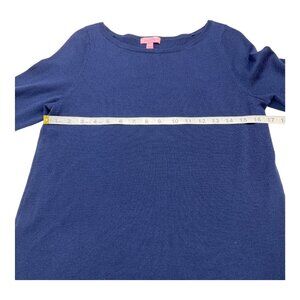 Lilly Pulitzer Helena Dress Womens L Blue Merino Wool Sweater Midi Preppy Office