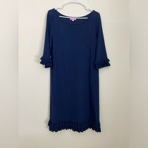Lilly Pulitzer Helena Sweater Dress Navy Blue Size Large Merino Wool EUC