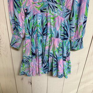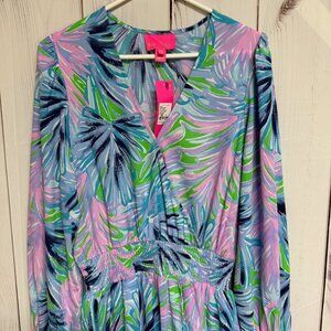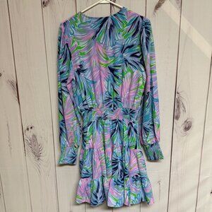 Lilly Pulitzer Heline Dress, Gecko Green Beach Bash dress, Lilly Pulitzer size 10 dress, stretch resort dress, tropical print dress, long sleeve Lilly Pulitzer #LillyPulitzer #HelineDress #Size10 #GeckoGreen #NWT