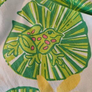 TAGS: Coastal, Tropical, beachy, Florida, vaca, vacation, beach, pool, casual, boho, bohemian, cruise wear, resort wear, Resortwear, Lilly Pulitzer skirt, lily pad skirt, frog print skirt, summer skirt, green yellow skirt, tropical print skirt, casual skirt, designer skirt