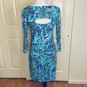 Lilly Pulitzer Hollee Dress Sneak A Beak Bennett Blue Long Sleeve Dress Size Small