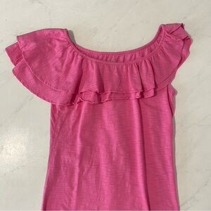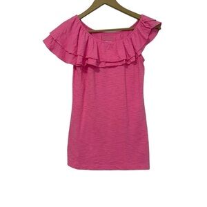 Lilly Pulitzer Hot Pink Asymmetric Ruffle Shoulder Top Size XS