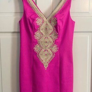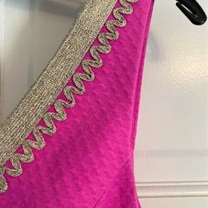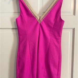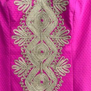 Lilly Pulitzer Hot Pink Sleeveless w/Gold Embellished Textured Dress 0