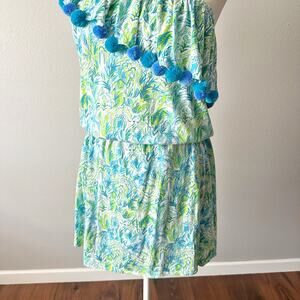 Lilly Pulitzer Idara One-shoulder Pompom Romper Dress Resort Women’s Size Medium