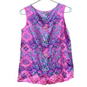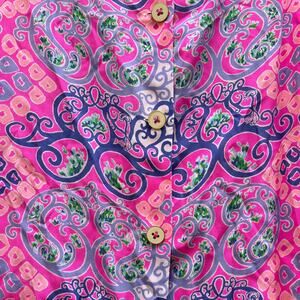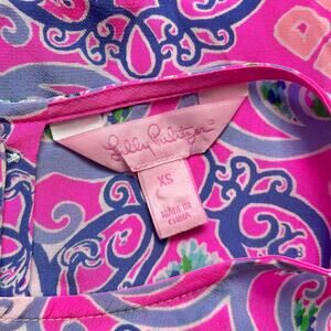 Lilly Pulitzer Iona Shell 100% Silk Top in Pink Behind the Gates Print. Back Buttons. Women's Size XS.