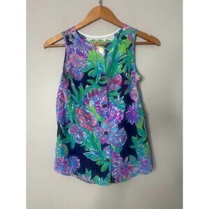 Lilly Pulitzer Iona Sleeveless Shell Tank Silk Top XS Gold Button Tropical Beach