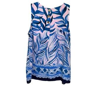 Lilly Pulitzer Iona Top Sleeveless Women’s M Pink Tropics Heat Wave Blue Resort