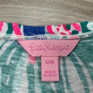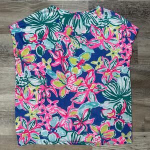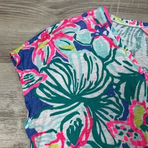 Style Tags: Lilly Pulitzer floral top, Casa Azul print, resort wear, beach vacation, linen summer top, bright tropical shirt, S/M oversized fit