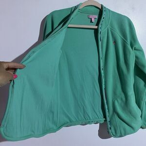 Lilly Pulitzer Jacket Small Turquoise Fleece Multicolor Trim Outdoor Fall Zip Up