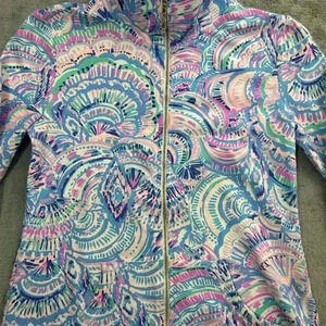 Lilly Pulitzer Jacket Womens XXS Leona Zip Up Happy As A Clam UPF 50+ Geometric