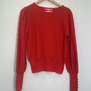 Lilly Pulitzer - Jacquetta Gold Button Sleeves Scalloped Neck Sweater Size Small