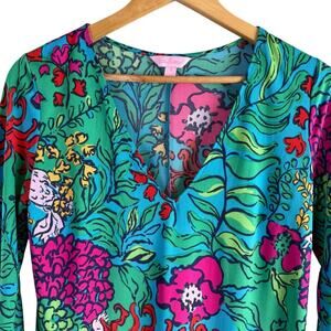 Lilly Pulitzer Jade Shift Dress in Multi Shake Your Tail Feather Green Pink, Size Small