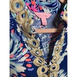 Lilly Pulitzer Jane Shift Dress Deep Indigo Gypsea Girl Blue Pink Gold Womens 4