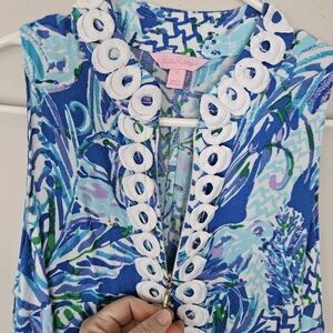 Lilly Pulitzer Jane Shift Dress canopy chaos blue & resort white size 2