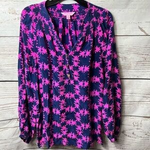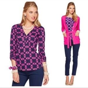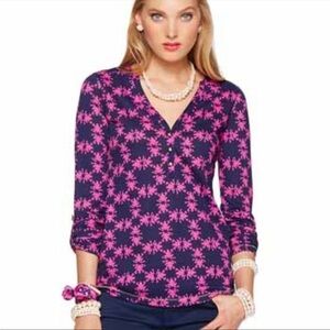 Lilly Pulitzer "Get Hoppy" Janelle Top. Navy with pink