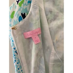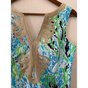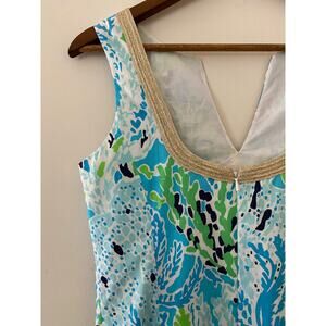 Lilly Pulitzer Janice Blue Green Gold Sheath Shift Dress 2 Flaw Minor