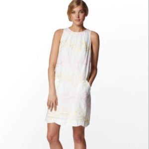 Lilly Pulitzer Janie scallop shift dress size 2. White with pink and yellow floral stitching, with pockets. VEUC, no flaws that I can find. Only worn twice. 100% cotton. Style # 97107.