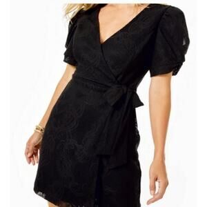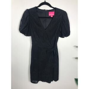 Lilly Pulitzer Jasleen Mini Black Wrap Lace Romper Dress Shorts Womens XS Resort