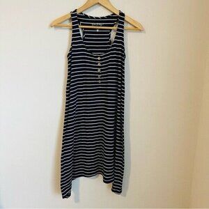Lilly Pulitzer Jennalyn Swing Dress True Navy Palm Stripe Size XXS, good used condition with no flaws, smoke-free home. The flowy waterfall hemline of the Jennalyn Swing Dress makes it perfect for a day of frolicking. Navy and white stripe sleeveless dress with gold buttons.