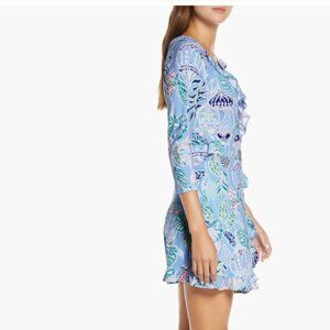 Lilly Pulitzer Jessalynne Wrap Romper V-Neck Peri Lapis Lantern Light Blue Small