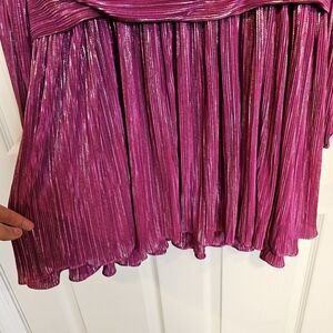 Lilly Pulitzer Jessamie Crinkle Foil Swing Ruffle Fushia Magenta Metallic V-Neck
