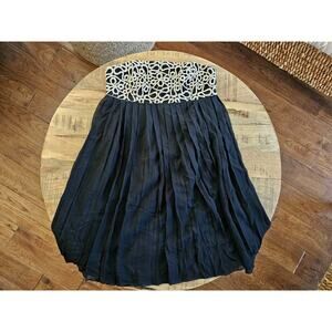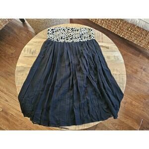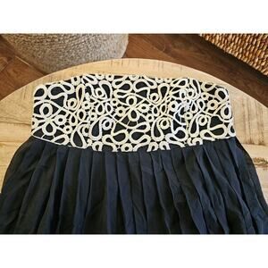 Lilly Pulitzer Jillie Black Gold Silk Chiffon Strapless Dress Size 0 Embroidered