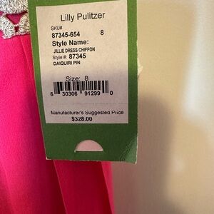 Lilly Pulitzer Jillie Pink Chiffon strapless Dress. Gold detail. Sz 8. NWT $328