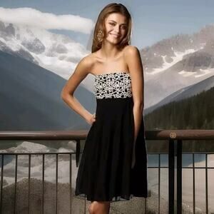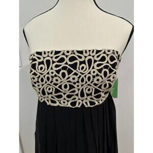 Lilly Pulitzer Jillie Silk Strapless Dress Black Gold Chiffon Size 8, NWT