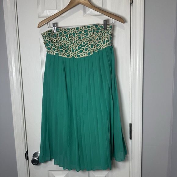 Lilly Pulitzer Jillie Strapless Dress in Teal with Cream/Gold Applique Size 4/6