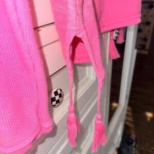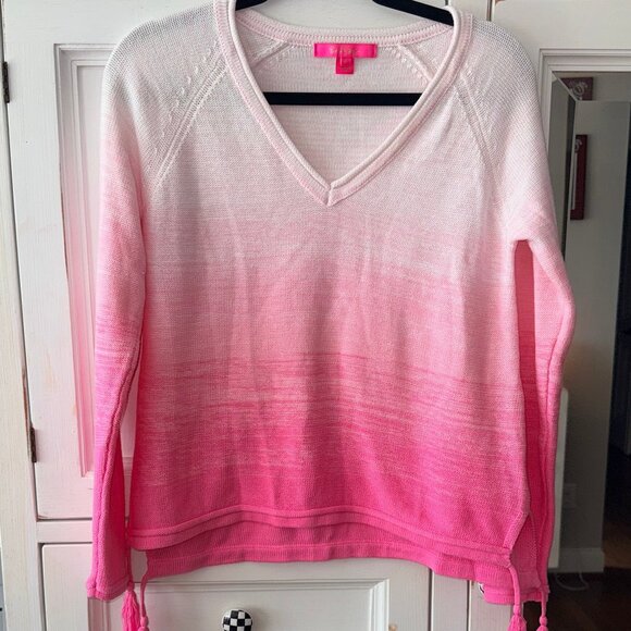 Lilly Pulitzer Jody V-Neck Sweater Havana Pink Marbled Ombre Tassels SMALL VEUC