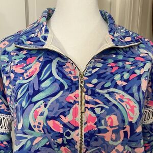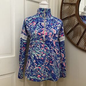 Lilly Pulitzer Jonah 1/2 Zip Coastal Popover in Colorful Florida Southern Preppy Royal Purple Party Wave size XS