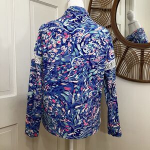 Lilly Pulitzer Jonah 1/2 Zip Coastal Popover in Royal Purple Party Wave size XS