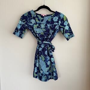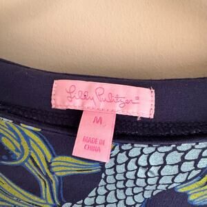 Lilly Pulitzer Jonah Mini Dress Blue Green Koi Fish Tie Waist Short Sleeve Sz M