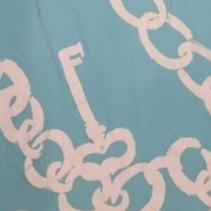Beautiful Lilly Pulitzer dress in size medium. This dress features a stunning blue background with a white keys and chain design, perfect for a coastal or nautical look. Originally designed with 3/4 sleeves, it has been expertly tailored into short sleeves for a more versatile spring and summer style.