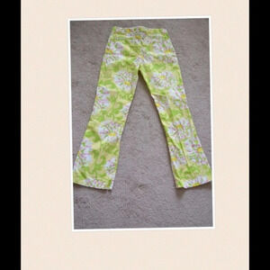 Gorgeous Lilly Pulitzer Jubilee print. Size 14Youth fits 00= waist 25" and inseam 25". Made of cotton. In excellent condition. Light lime green, light pink white color combination!