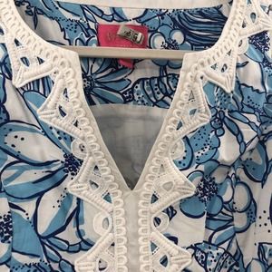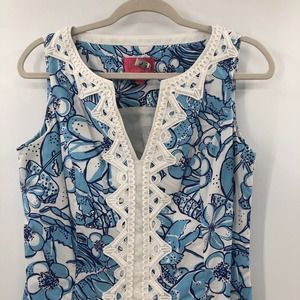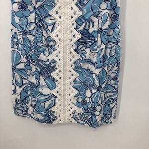 Lilly Pulitzer Jubilee Cali Shift Dress Blue Coronado Crab White Lace Size 6